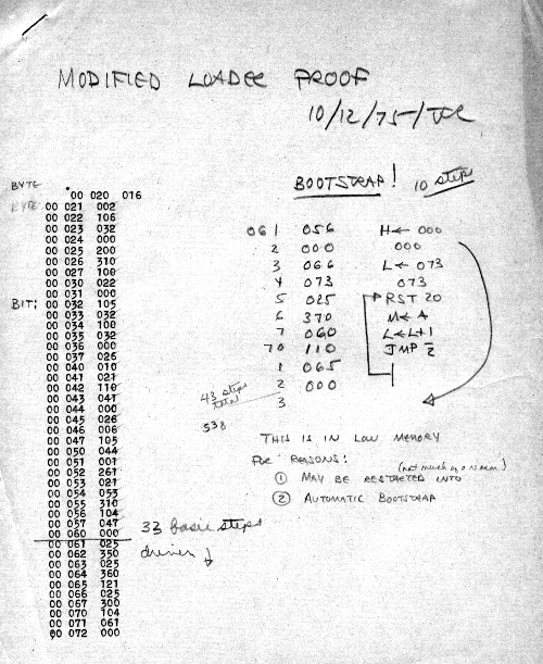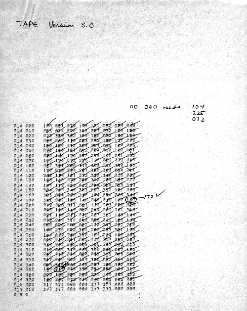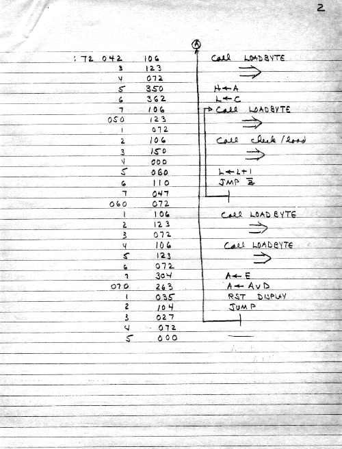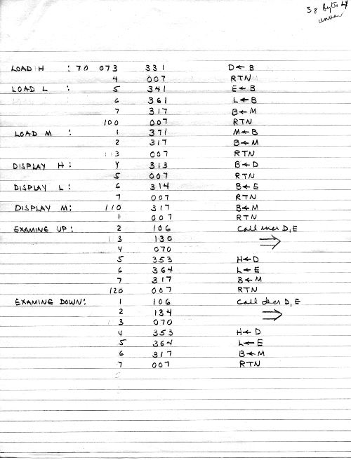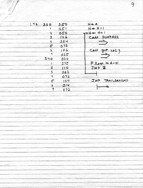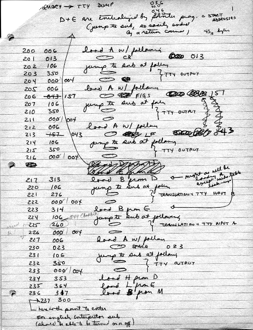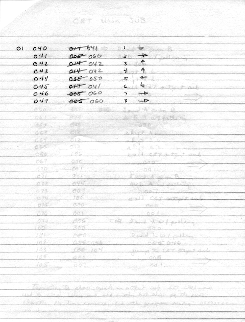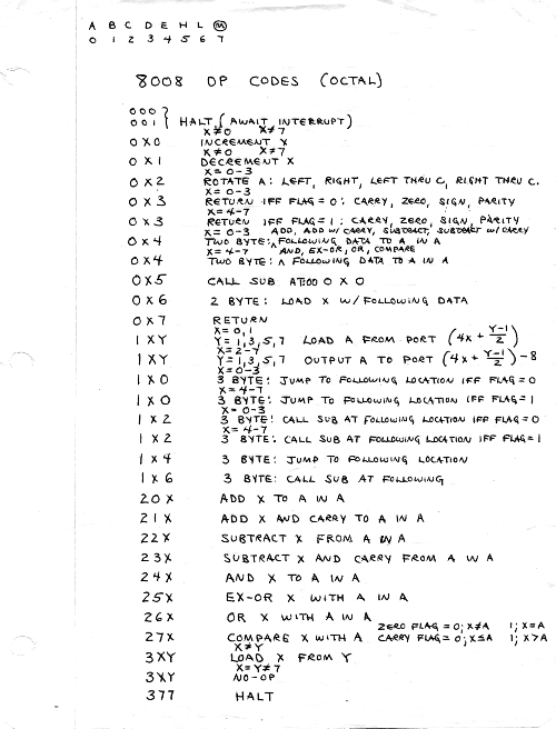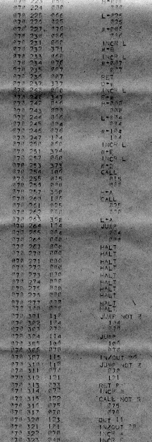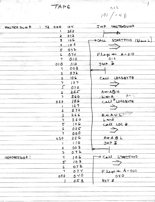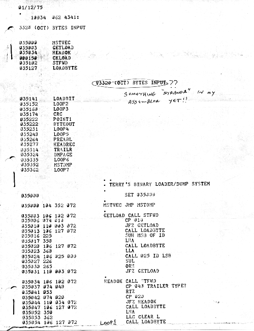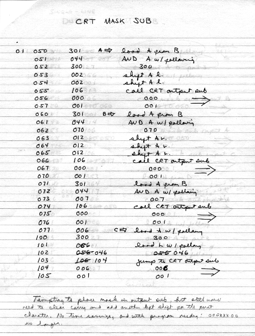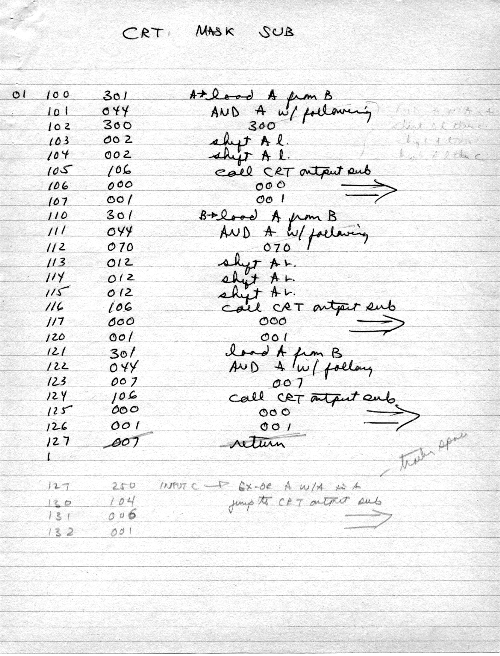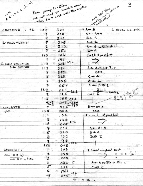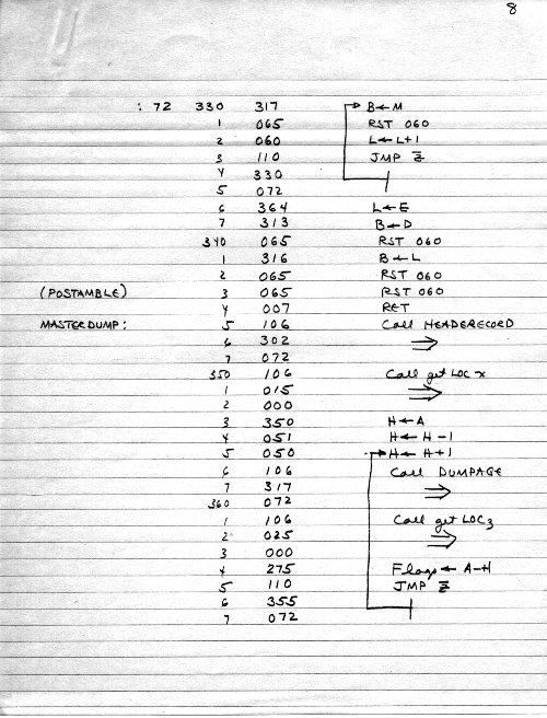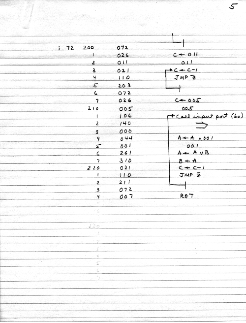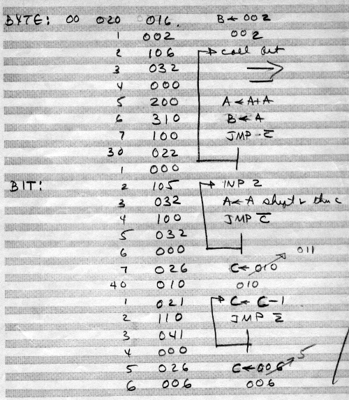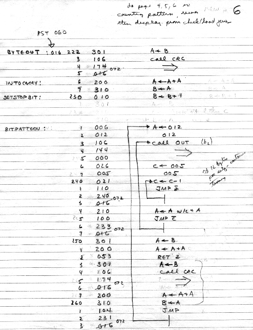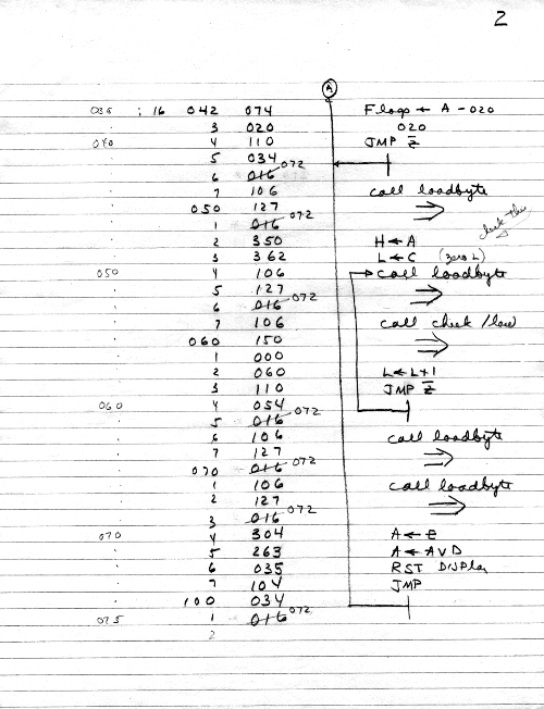 I would of course work out an entire 8008 program in pencil on paper, location-by-location, before typing it in. Then I would have to modify the program on that listing because there was no editor where I could fix up the source and type out a clean listing.
