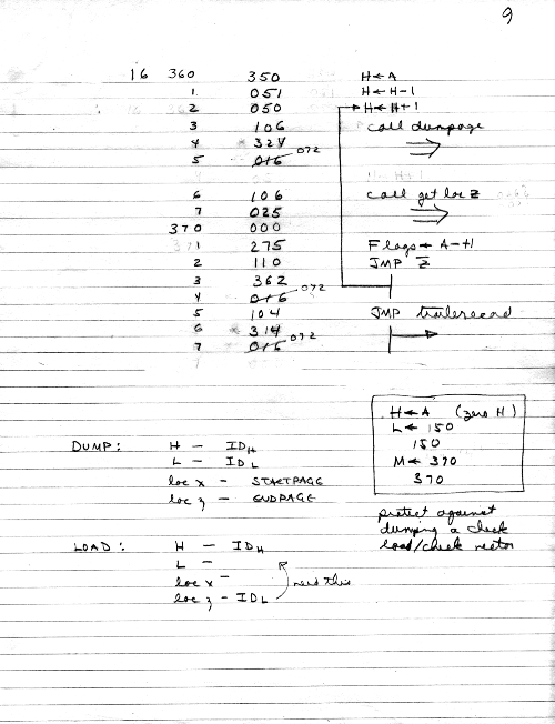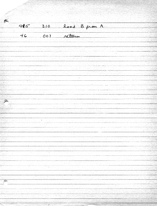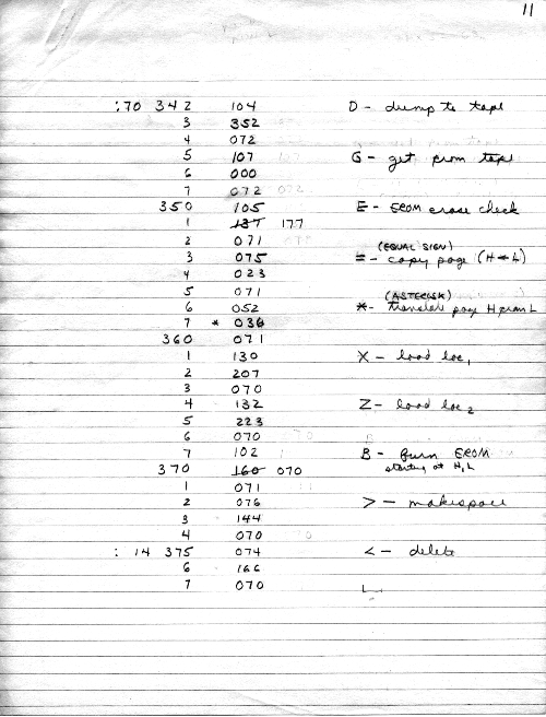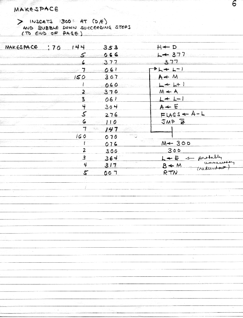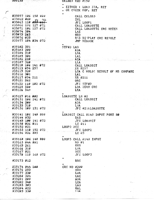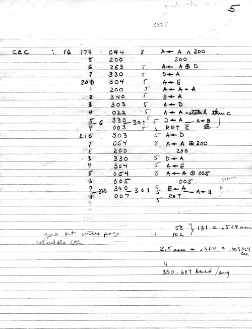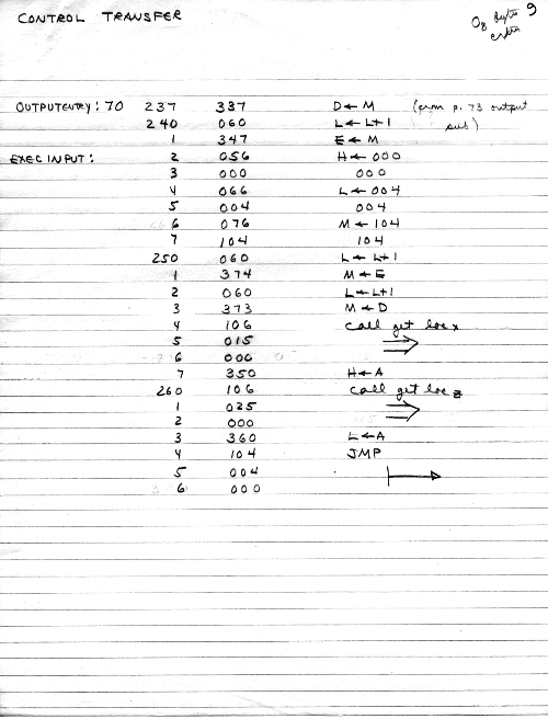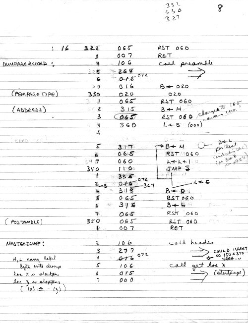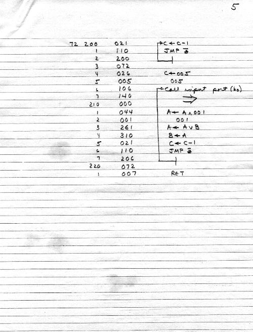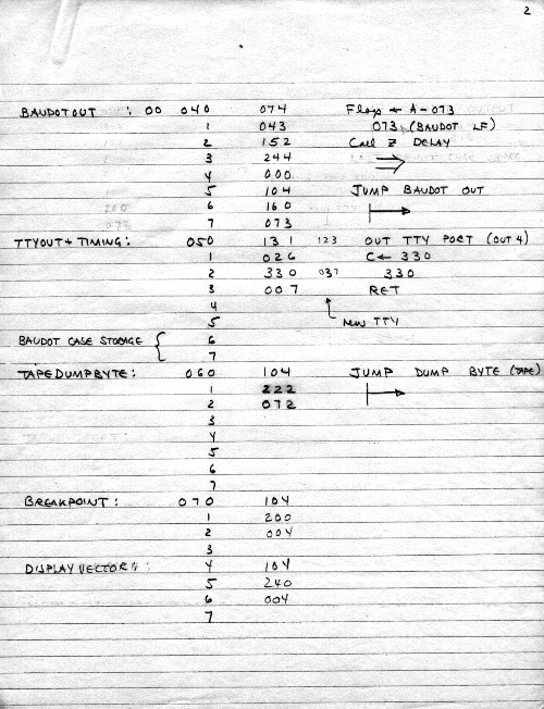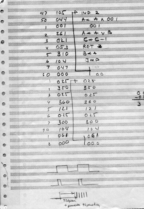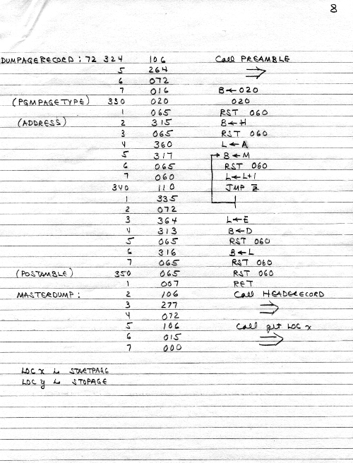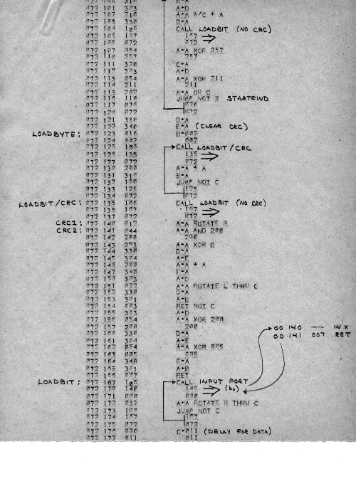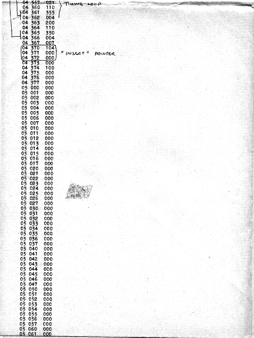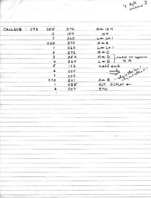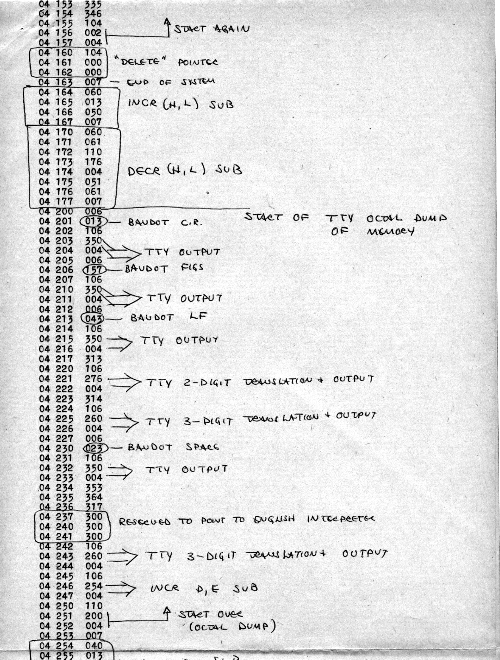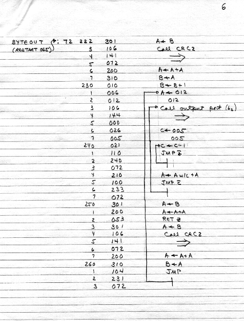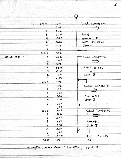I would of course work out an entire 8008 program in pencil on paper, location-by-location, before typing it in. Then I would have to modify the program on that listing because there was no editor where I could fix up the source and type out a clean listing.
