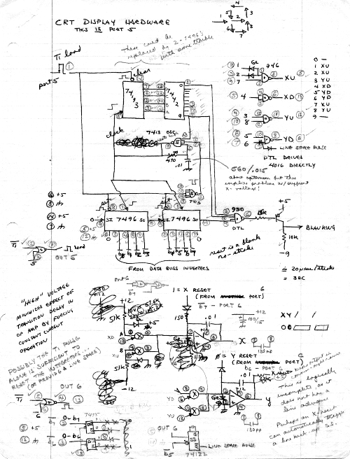 Eventually, I found some XY display CRT systems on surplus, and actually bought some. But by this time I did not have the time to use them. And then the price of memory came down so that a dot-mapped display screen made more sense.