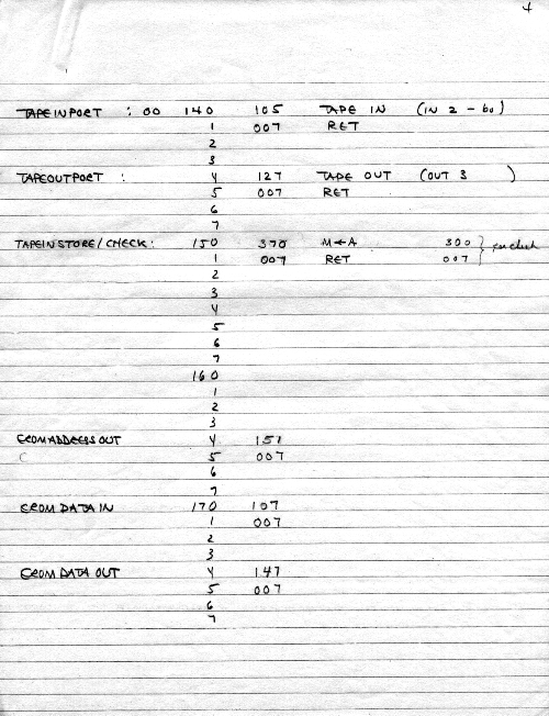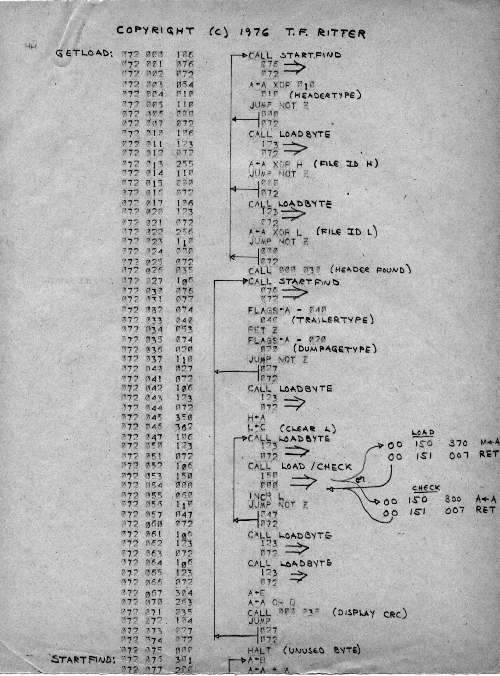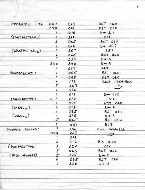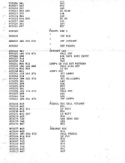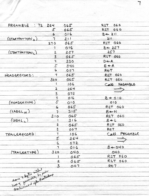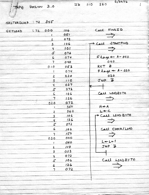 This is an early tape loader bootstrap. There is no real file structure, no file naming, no CRC, no dump, just the raw loading of data. Presumably, the tape dump program was saved on tape, and all we needed to do was bring it in. This was probably more experimental than useful, probably based on Carl's first ideas.