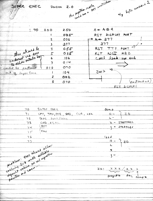 The line of development of keyboard entry and debug continued later with EXECLOADER and then SUPEREXEC, below.
